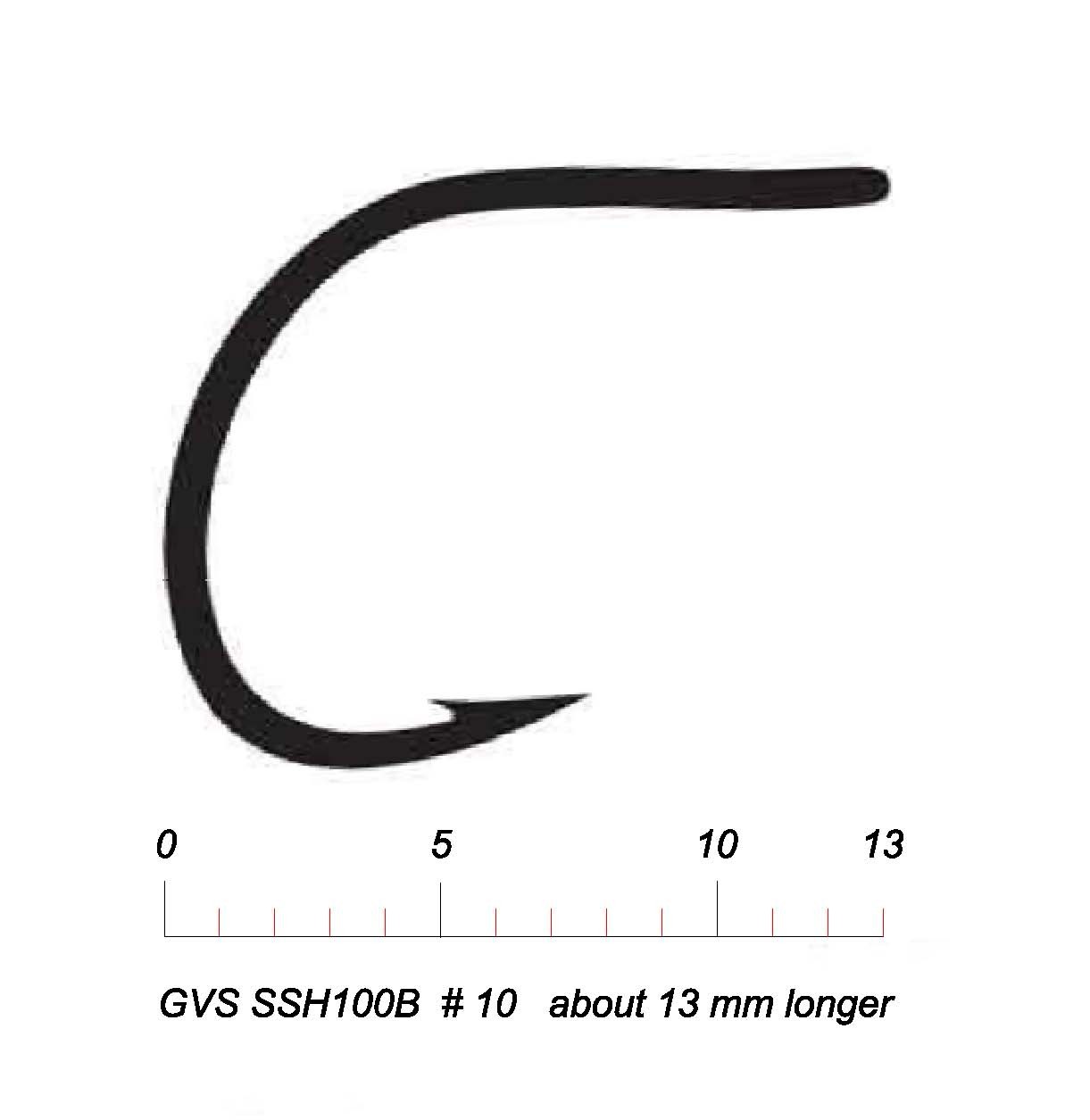 SSH100B Fly Hooks are a new type of hooks with Short Shank made by GVS, which are very useful to make Dry and Floating Flies. These Hooks are made and designed with a minimum length of the tail helping to reduce to a maximum the visibility of the hook weight and with a large opening to the tip of the fishing rod enabling the holding of the fishes in the best possible way throughout the period of catching such. The wide arch warrants the holding of the fish from its catching until taking it out from the rod.